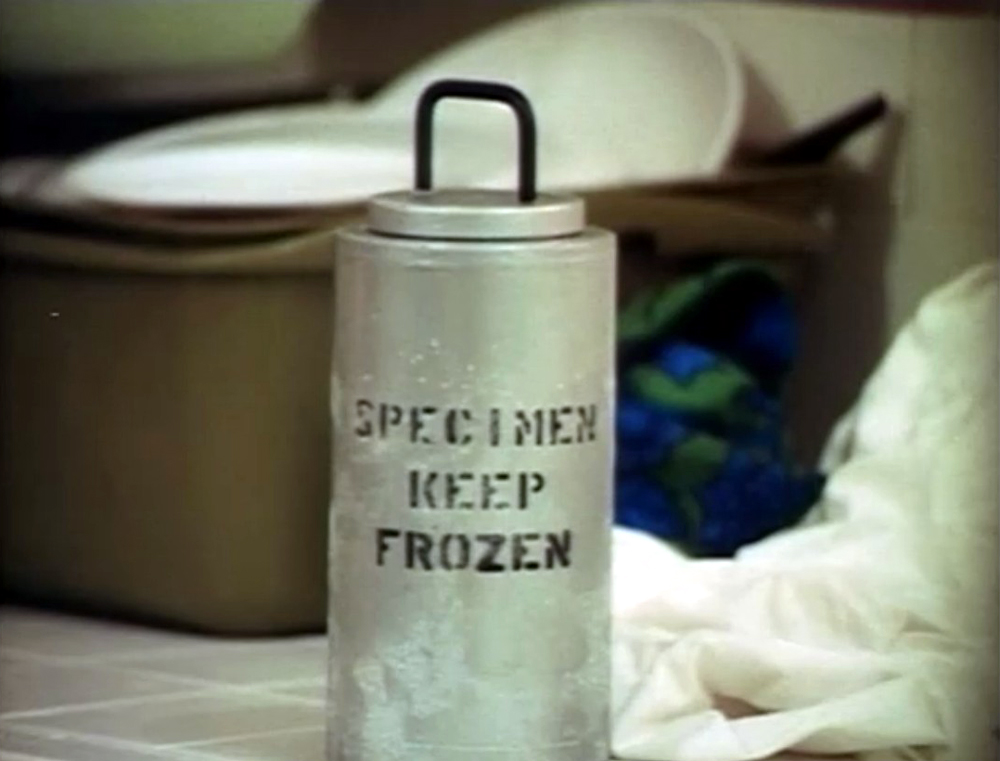 So just what the Hell do we got going on here anyway? Godfrey Cambridge as Chester Hargis has just returned from the frozen wastelands and brought home with him a sealed container he found, and his stupid wife has taken it out of the freezer and set it on the kitchen counter. Guess what? The Blob's inside! That's it, might as well, go to The End, because that's the story..........