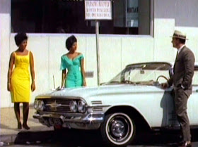 I love this very short scene where these two streetwalkers come up and ask Mr. Bigshot for a ride in his fancy car, and 001 politely tells them that it's a rental!