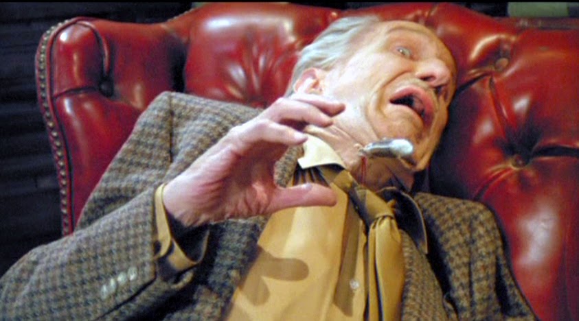 It starts with a reporter, Beth Chandler, played by Susan (FORBIDDEN ZONE) Tyrrell, questioning Julian White (Vincent Price) about the weird history of his hometown, Oldfield.