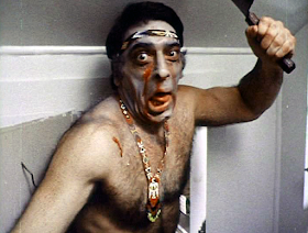 Karen is freaking out, she opens a cabinet door to find Dr. Werner's cook, Laughing Crow, apparently dead there. He suddenly gets out of his hiding place and pursues her through the house with a big butcher knife!